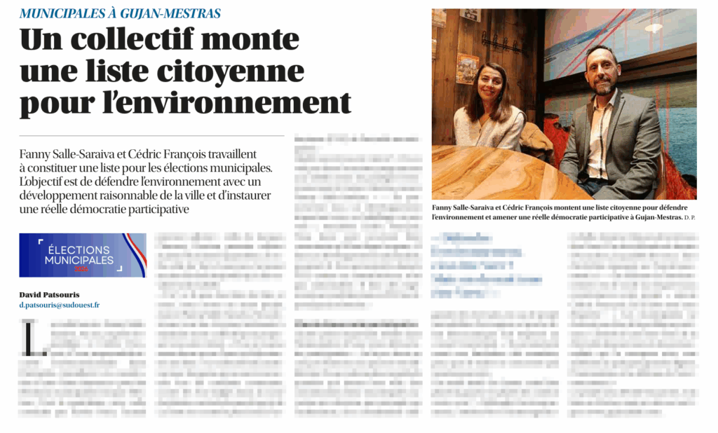 Contrairement aux pratiques politiques établies, « Gujan-Mestras 2026 » est une liste citoyenne qui ne se construit pas autour d’un seul « homme providentiel » dont l’ambition est de devenir le maire de notre commune. Ici, nous ne cherchons pas un héros pour tout décider à notre place. Nous cherchons des solutions pour répondre aux enjeux du quotidien (urbanisme, environnement, santé et lien social, mobilités, dynamisme économique, etc.) et c’est l’intelligence collective qui les porte !