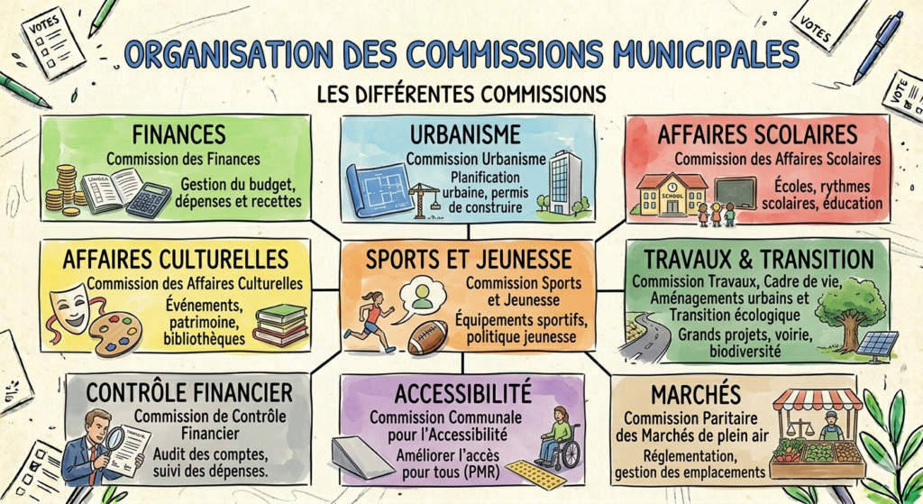 Voici les principales commissions dans lesquelles 1 siège nous sera réservé.