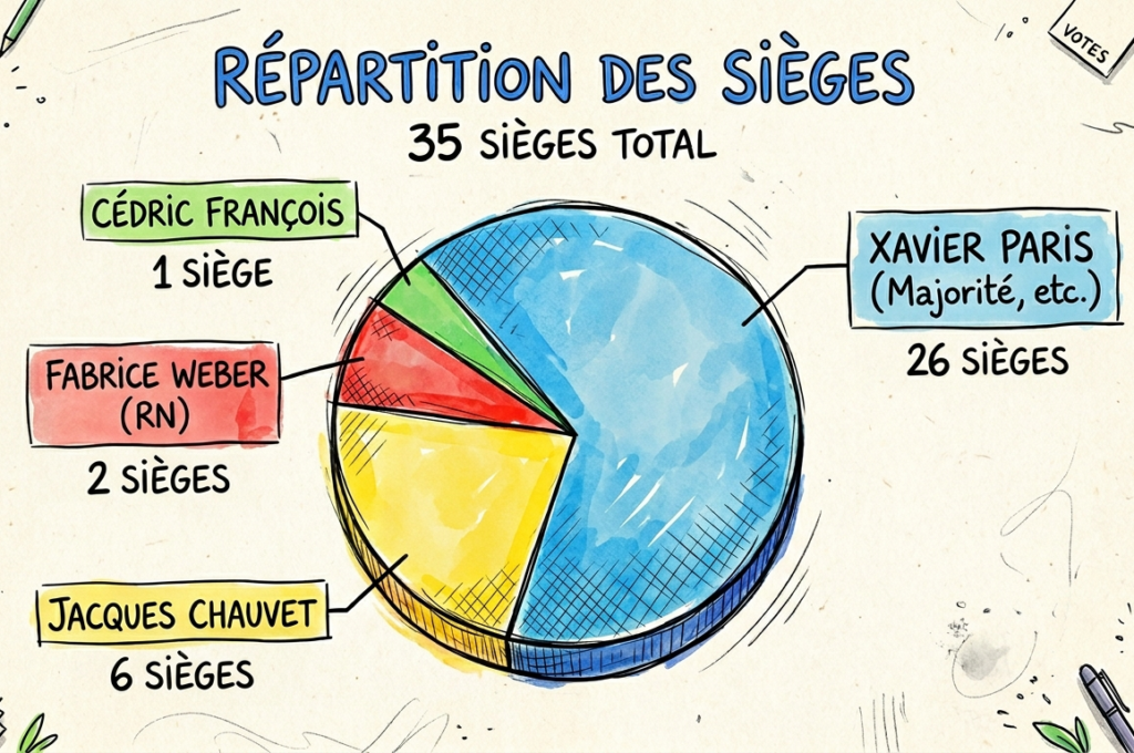 Lors de la répartition des sièges au conseil municipal (CM), la liste arrivée en tête au 2e tour bénéficie d’une prime majoritaire, ce qui rend le CM non représentatif des résultats du vote. C’est la règle, faisons avec !
